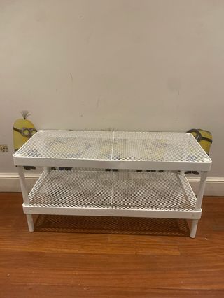 Se vende zapatero metálico. Medidas en cerrado de largo 63 cm pero se extiende hasta 117 cm.