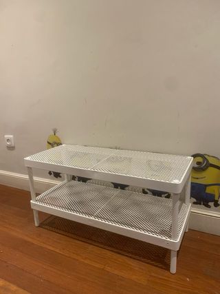Mueble zapatero de la serie Brusali de Ikea. Con un diseño moderno y funcional para organizar tu calzado. - Tres cajones con dos alturas para zapatos. - Una balda para poder dejar cosas. - Acabado en color blanco. - Fabricado en madera. Hay dos, se pueden comprar los dos en lote (100€, hay otro anuncio en mi perfil). Se pueden ver las pequeñas marcas que tiene en las ultimas tres fotos.