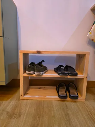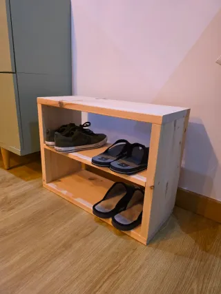 REBAJADO URGE VENTA Mueble zapatero de madera con cuatro alturas. Aptos para zapatos hasta talla 45-46. Caben 3 pares de deportivas anchas (hombre) o hasta 8-9 pares de sandalias por cajón. Espacio para 12-18 pares de zapatos según talla y horma. Alto: 153cm Ancho: 69cm Fondo: 17cm Altura del cajón: 34cm Importante anclarlo a la pared o calzarlo - Diseño moderno y funcional. - Tiradores redondos. - Ideal para organizar calzado.