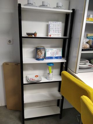 Bajada de precio.Estantería de madera con 6 estantes , blanca con las patas en negro. Medidas 157 alto +12 sobresaliente superior, 60 ancho, 18 fondo. 2,5 grosor de balda. Sirve como Zapatero, para colocar macetas, en el baño para productos de higiene, para lo que quieras...