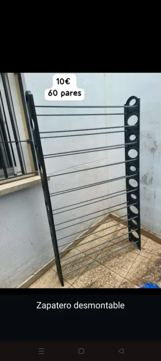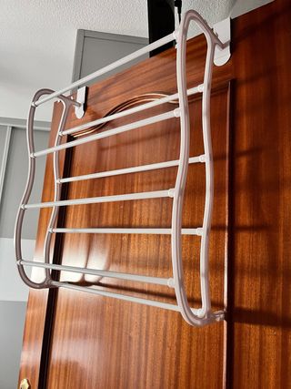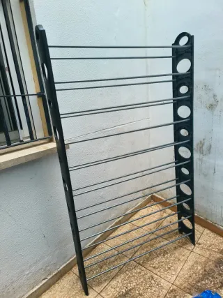 Zapatero metálico de dos niveles, ideal para organizar el calzado. Como nuevo - Diseño sencillo y funcional. - Fácil de montar y desmontar.