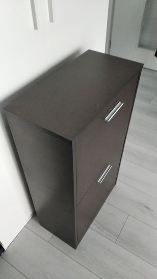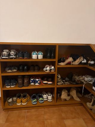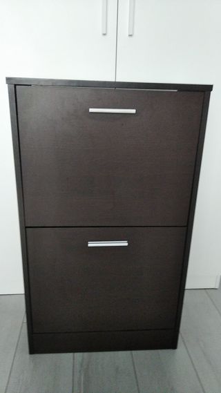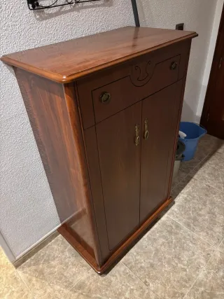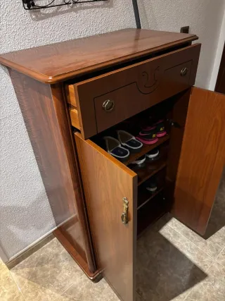Mueble de madera con un diseño clásico y elegante, ideal para organizar tus zapatos. - Acabado en tono marrón cálido. - Amplio espacio de almacenamiento. - Precio negociable. - Mirar perfil para posibles packs.