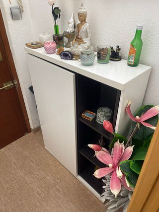 Se venden dos zapateros de Ikea en color blanco y con acabado en madera. - Diseño moderno y funcional. - Dos unidades incluidas. Uno tiene en la pata esconchada Cada uno 50 €