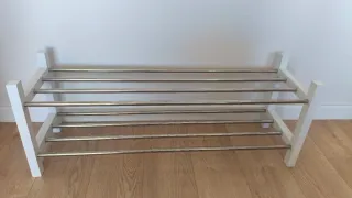 Práctico zapatero de dos niveles para organizar tus zapatos. - Estructura de plástico resistente. - Diseño moderno y funcional.