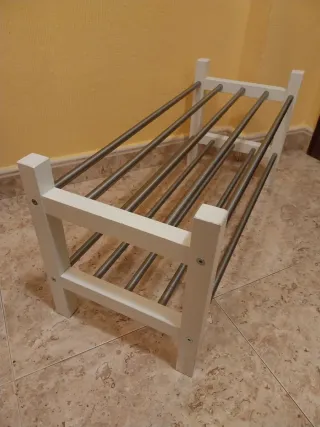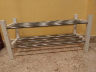 Zapatero de diseño moderno con estructura de madera y baldas metálicas. Largo 100cm Alto 37 cm profundidad 29,5 cm