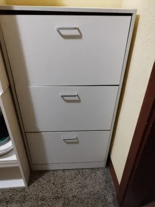 Bonito zapatero de dos cajones, ideal para cualquier entrada. Es de color blanco y está en muy buen estado. - Perfecto para organizar el calzado. - Diseño sencillo y elegante. - Dos cajones espaciosos. - Medidas 82,5x60x25cm
