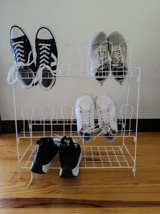 Práctico zapatero plegable de dos niveles para organizar tu calzado. Mide 57x21x64 cms - Estructura de metal resistente. - Diseño plegable para fácil almacenamiento. - Ideal para mantener el orden en casa.
