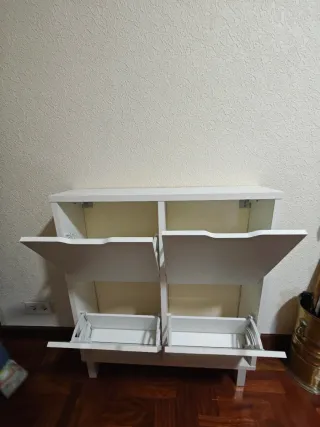 Zapatero mueble 3 cajones. Sirve de almacenamiento y por su diseño tambien como mueble para la entrada. Actualmente en uso como almacenamiento, pero no se utiliza habitualmente/a diario. En perfectas condiciones. Se vende montado.