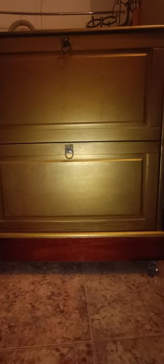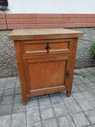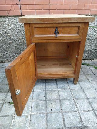 Vendo esta mesita de noche en perfecto estado. Es de madera y mantiene su color original, pudiendo pintarla sin mayor problema. Tiene un cajón inferior como zapatero. Tirador original también. Es una mesita robusta, de madera 100%, nada que ver con lo que se vende ahora.