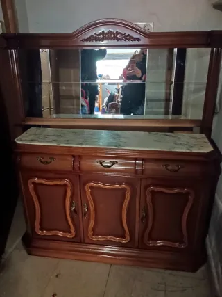 Mueble zapatero , ideal para entrada , pero se ve bien en cualquier lugar. Se compone de un mueble de madera oscura con un elegante sobre de mármol - Diseño clásico con líneas curvas. - Un cajón y tres puertas. -le falta una manilla Sólo el mármol vale más del precio que se pide.