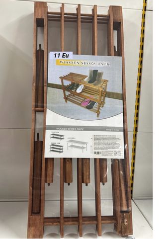 Práctica zapatera o estantería de madera con varios niveles. - Diseño abierto para ventilación. - Ideal para organizar zapatos o como estantería auxiliar.