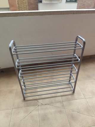 Zapatero de metal y plástico con varias baldas para organizar tus zapatos. - Estructura metálica. - Baldas de plástico.