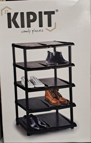 Estupendo zapatero de la marca Kipit, color negro y fabricado en plástico resistente. Nuevo sin estrenar en su caja - Tiene 5 estantes para organizar el calzado. - Medidas: 79 x 30 x 48 cm. - Ideal para mantener el orden en tu hogar.