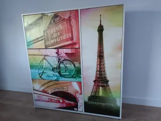 Zapatero con un diseño inspirado en París, que combina varios elementos icónicos de la ciudad. - Ilustraciones de la Torre Eiffel, Montmartre y una bicicleta. - Diseño de cajones con imágenes temáticas.
