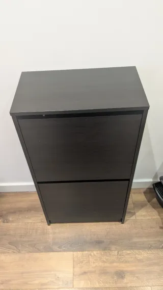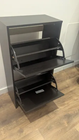 Zapatero de Ikea en color negro. Un mueble práctico para organizar tus zapatos. - Diseño moderno y funcional. - Material resistente y fácil de limpiar.