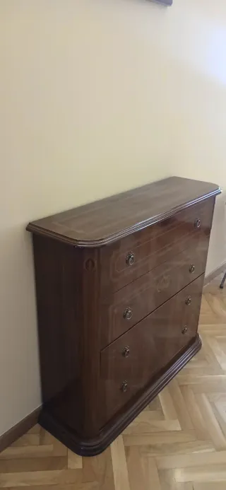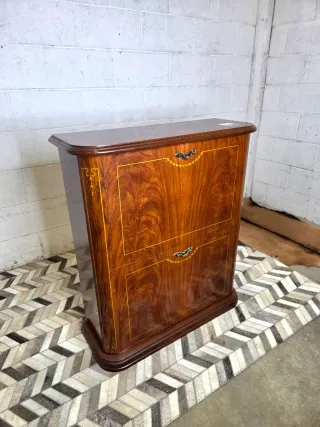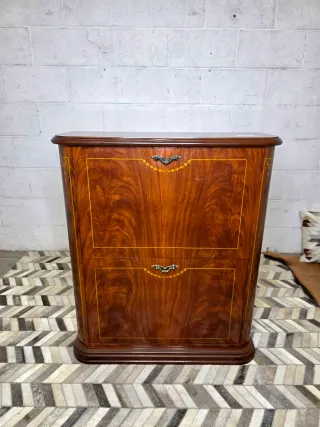 Mueble de madera con un diseño elegante y acabados detallados. - Tiradores metálicos. - Detalles de marquetería en los frentes.