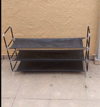 Zapatero extensible y desmontable, ideal para organizar tus zapatos. Queda como en la foto. - Estructura de metal y plástico. - Color plateado y negro.