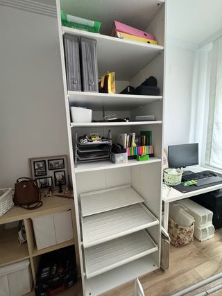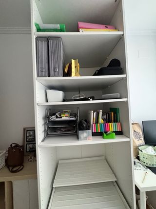 Se vende estructura de armario IKEA PAX de 75 x 58 x 233 cm. La altura original del modelo es de 236 cm, pero se retiró el zócalo inferior para adaptarlo en su momento a una altura diferente, por lo que actualmente mide 233 cm. Se vende con todo lo que aparece en la foto, además de: • 4 estantes adicionales • 2 zapateros El armario está en buen estado y ofrece múltiples opciones de organización. 💬 Precio negociable. 🚚 Recogida únicamente en persona (no se envía).