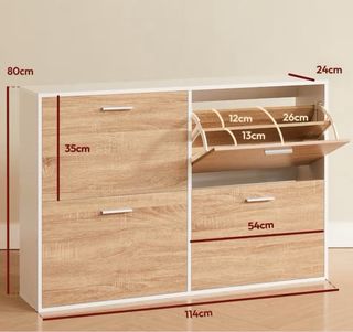 Zapatero 4 compartimentos madera y blanco.