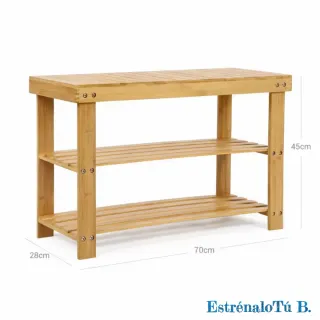 Zapatero de dos niveles fabricado en bambú y madera. - Diseño de 2 niveles. - Materiales naturales.