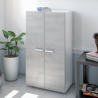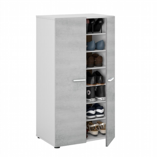 Mueble zapatero de diseño moderno. - Acabado en blanco y gris. - Fabricado en madera. - Mide 105 de alto x 59 de ancho y 17 de fondo.