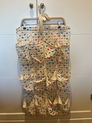 Organizador colgante con múltiples bolsillos, ideal para zapatos o accesorios. - Diseño con estampado de antifaces y estrellas. - Cuelga fácilmente en puertas o armarios. - Varios compartimentos para una organización eficiente.