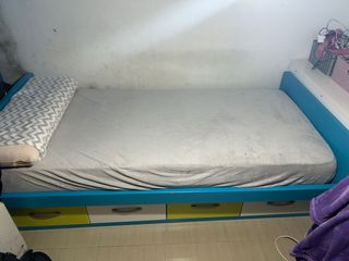 (Todo gratis) Cama individual con un diseño moderno y funcional. Incluye espacio de almacenamiento integrado. - Cajones en la parte inferior para guardar objetos. - Compartimento tipo zapatero. - Repisa adicional para libros o decoración.