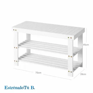 Práctico zapatero de tres niveles para organizar tu calzado. - Diseño moderno y funcional. - Estructura resistente.