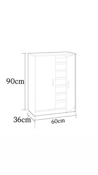 Zapatero de tres baldas con un diseño moderno y limpio. - Estructura de madera. - Puertas abatibles.