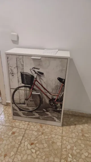 Mueble zapatero con un diseño moderno y original. - Puerta con impresión de bicicleta. - Tirador metálico.