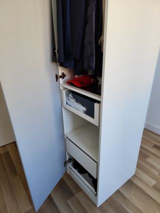 Mueble zapatero de la serie PAX de Ikea. Diseñado para organizar calzado de forma eficiente. - Estructura metálica. - Acabado en color blanco. precio 15€ los dos