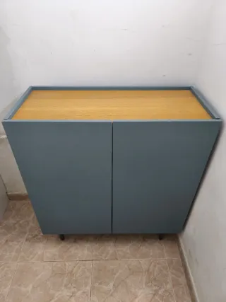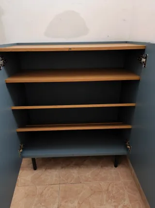 Zapatero 2 puertas azul y madera 80cm