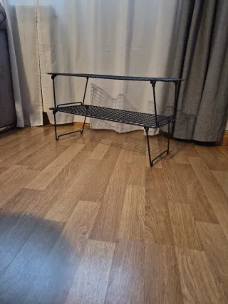 Zapatero de metal con dos niveles para organizar tus zapatos. - Diseño moderno y funcional. - Estructura resistente. Entran entre 6 y 8 pares de zapatillas.
