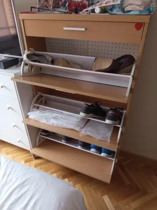 Zapatero de madera maciza natural. Coste original entre 400 y 500 €. Entrega en mano (mueble pesado). Excelente estado de conservación. Se vende por cambio de mobiliario.