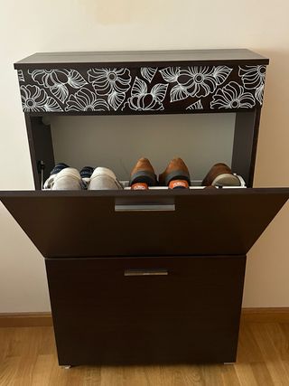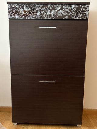 Mueble zapatero de dos puertas para pasillo. Está en muy buen estado y es perfecto para organizar el calzado. - Dispone de espacio para zapatos y otros objetos. - Diseño moderno y funcional Se regala cuadro URGE LA VENTA