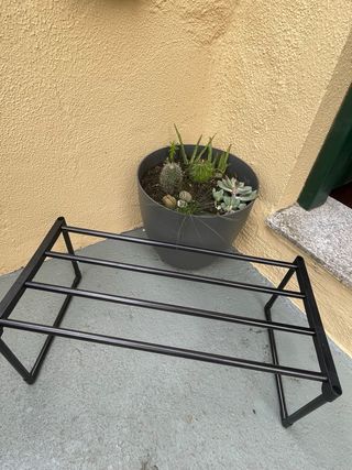 Práctico Estante Zapatero de Acero, Apilable y Plegable. Para la entrada, el armario, el trastero... Caben hasta 3 pares en cada estante y pueden apilarse hasta 3 estantes. Puedes usarlo para calzado, ropa, toallas, complementos... Cuando no lo necesitas, puedes plegarlo y guardarlo. Medidas: 58x27x17 cm. de alto Precio por ud. Pack 3 uds. = 11 € Disponible en color: > Negro. > Verde Grisáceo. ℹ️ Combinable con Bandeja, pregunta disponibilidad bandeja. *Nuevo, sin uso. *Liquidación. Recoger en el Calvario ~ Vigo. (Entregas en Ourense o Vilar de Santos, Consultar Fechas) Tags: organizador organizar apilar vestidor