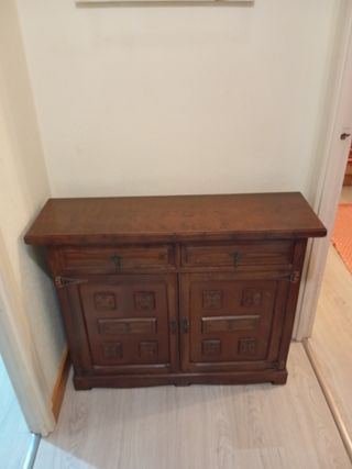 Mueble de Madera Maciza con dos Cajones,Dos Puertas y Estante interior. Bisagras y Tiradores de Hierro Forjado. Madera muy gruesa,vale para zapatero.