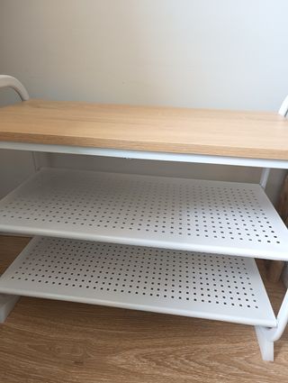 Bonito zapatero de Ikea, en color blanco y de madera. Está en buen estado. - Tiene tres cajones espaciosos. - Diseño sencillo y elegante. - Ideal para organizar el calzado. lo unico tiene una grieta de la pintura en el costado como se ve en la foto pero esta perfecto.