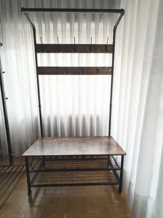 Perchero con zapatero de metal y madera