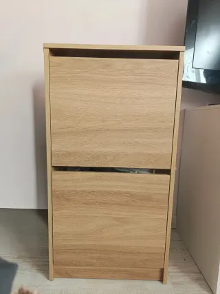 Vendo zapatero modelo "Trine" de Bauhaus en color madera natural (roble claro). Está en perfecto estado, igual que nuevo. Lo vendo por cambio de decoración. Es un mueble muy práctico porque tiene poco fondo (solo 22 cm) pero mucha capacidad gracias a sus 3 cajones con doble fila de almacenamiento. Caben unos 18 pares de zapatos. Características: * Modelo: Trine (Bauhaus). * Color: Roble / Madera natural. * Medidas: 113 cm (alto) x 60 cm (ancho) x 22 cm (fondo). * Sistema: 3 trampones abatibles con doble compartimento. * Precio original: Cuesta unos 60€ en tienda. Se entrega montado (te ahorras el montaje) y limpio. 📍 Delicias