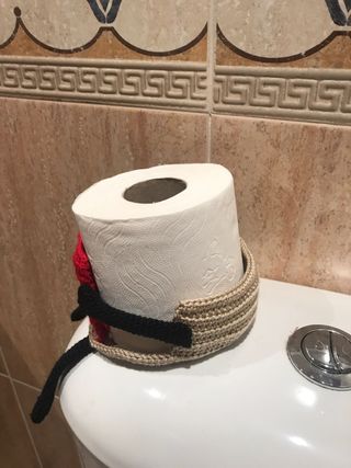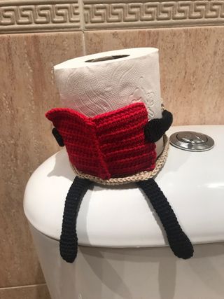 Original soporte para papel higiénico, hecho a mano con un diseño divertido. - Tejido de alta calidad. - Detalles en rojo y negro. Se realiza por encargo.