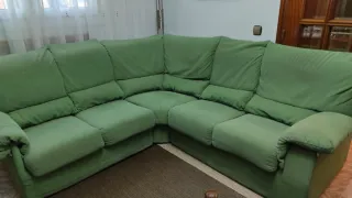 Sofá rinconera de tela en color verde. Es un sofa cómodo y espacioso, perfecto para salones de cualquier medida. Medidas 2'10 x2'10 x 85 de fondo - Tapicería de tela. - Diseño modular.