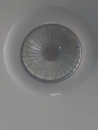 Ventilador de techo con un diseño moderno y elegante, ideal para cualquier estancia. - Acabado en color plata y blanco. - Fabricado con materiales de metal y plástico de alta calidad. Con varias posiciones de luz y aire. Mando a distancia