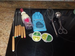 Lote de utensilios de cocina palillero cortador de tomates cortador de huevos cucharón de albóndigas etc