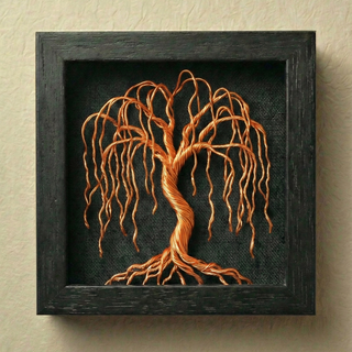 Árbol de alambre dorado en marco negro