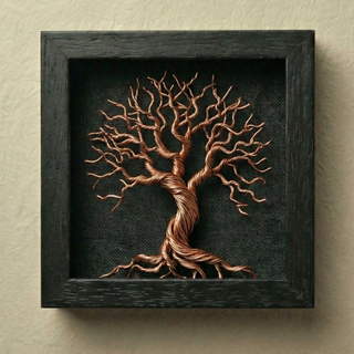 Cuadro Árbol Bonsái Alambre Marco Negro