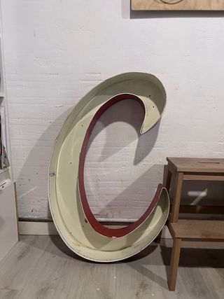 Este rótulo con forma de letra C aporta un toque distintivo a cualquier espacio. Su diseño curvo y sus acabados le dan un aire retro. - Fabricado en metal. - Combinación de colores beige y rojo.