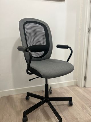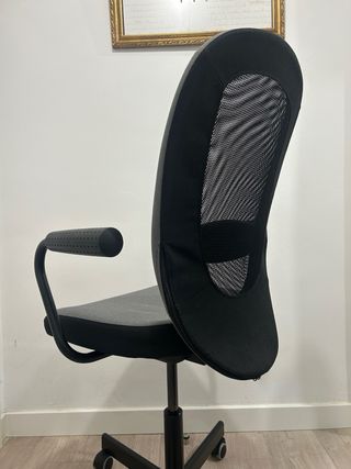Silla de escritorio con diseño moderno y confortable. - Respaldo de malla transpirable. - Asiento acolchado. - Brazos ergonómicos. - Base con ruedas para fácil movilidad.