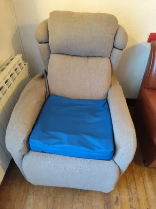 Cómodo sillón reclinable que te deja de pie. Ideal para personas mayores o dificultad para incorporarse. - Tapizado en tela. - Color beige y gris.