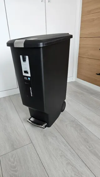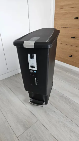 Papelera estrecha con pedal de la marca Simplehuman. - Capacidad de 40 litros. - Diseño elegante y funcional. - Fabricada en plástico resistente. Medidas aprox.: 26x50x65 cm